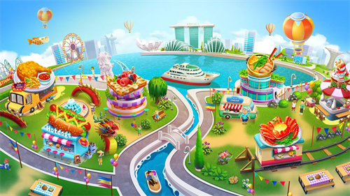 5、章节式推进剧情,每章解锁新城市地标厨房,需通过星级评定获取稀有厨具与装修素材。
