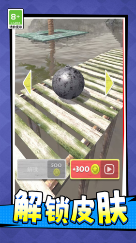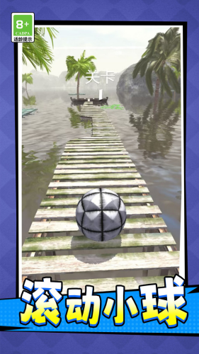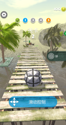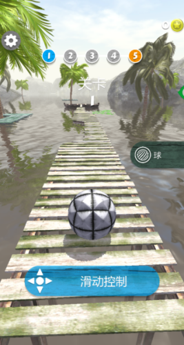 1、进入游戏后,你要操控着球球在木桥上一路闯关,千万不能掉到水中。