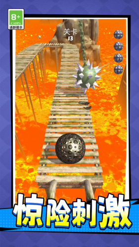 小球滚动的轨迹和碰撞效果都很真实,下坡时会自动加速,碰到障碍物会弹开,操作手感特别流畅自然。