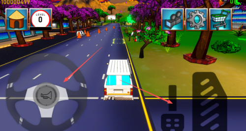 2、正式的开启挑战,我们通过左侧的方向盘,以及右侧的油门刹车按钮去控制车辆。