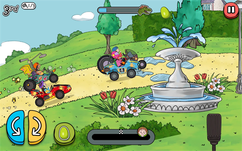 6、飞到空中时,按下左下角的控制按钮在空中旋转卡丁车,以保持卡丁车的平衡;