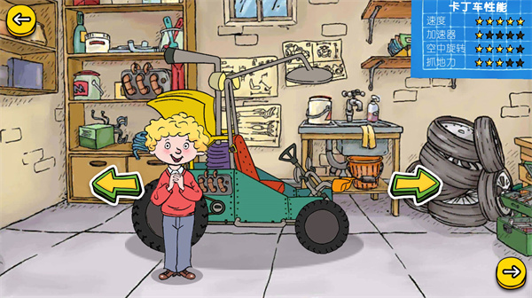 3、参观亨利的工作室,创造最酷的定制卡丁车。选择您的卡丁车,更换车轮,选择最佳引擎,然后添加时髦的贴纸和炫酷的油漆效果。你能创造出最时髦的卡丁车吗?
