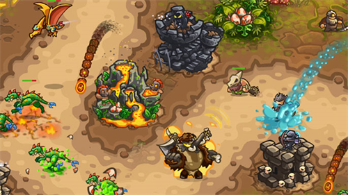 3、八种全新专业防御塔升级! 你可以用弩兵堡垒、强大的圣殿骑士、亡灵甚至地震机切开、烤焦和践踏你的敌人——嘿,跟你说过已经不一样了。