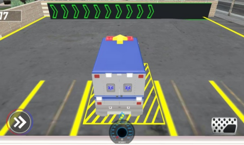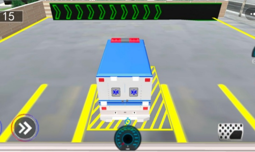 2、玩家在游戏中模拟驾驶救护车进行闯关,通过操控键控制救护车到达地点。