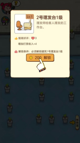 6、可以解锁新的发型设计师、购置更先进的美发工具和设备,甚至扩建店面,开设更多分店。