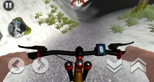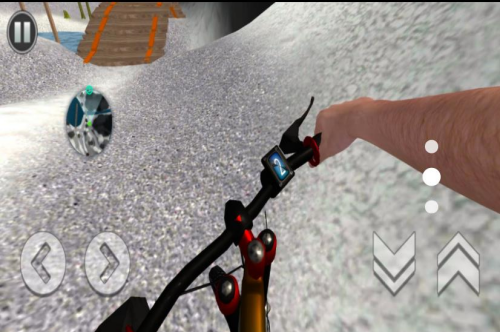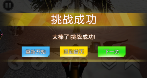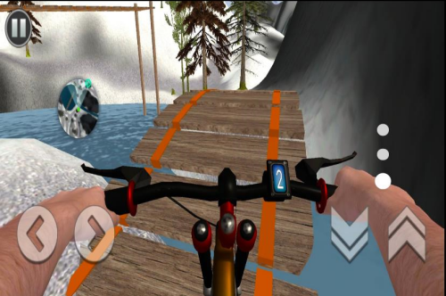 3、控制山地自行车行驶或跳跃:根据游戏提示,需要控制山地自行车在赛道上行驶或跳跃,灵活应对各种赛道障碍。