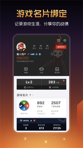 5、我们支持多个游戏平台的账号绑定,你的玩家成就名片一览无遗;