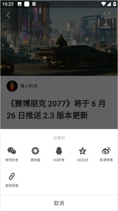 分享功能:每篇资讯的右上角有一个分享按钮,点击后可以分享资讯给好友,或者分享到社交平台。