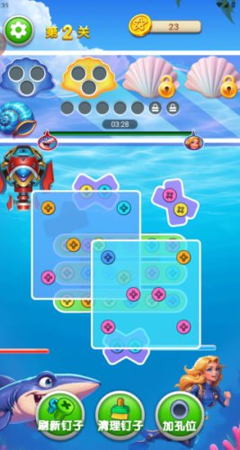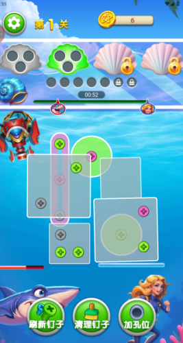 1、进入游戏后,你可以看到一个海洋美景,根据上方的螺栓颜色点击对应的螺丝。