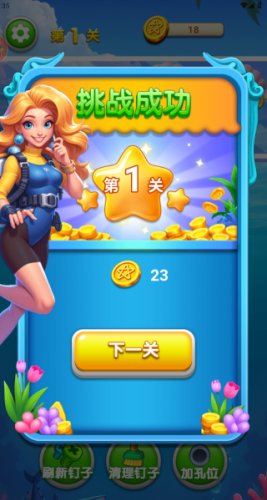 3、当你将所有的螺丝都消除了之后,就算是成功的闯关,获得金币奖励,解锁下一关。