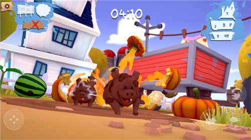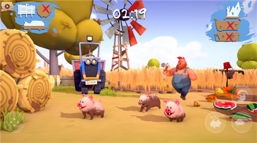 2、通过3对1的多人比赛,玩家将体验到激烈的竞争和紧张的对战。你可以选择扮演农场帮工或者小猪,与其他玩家展开刺激的比拼。