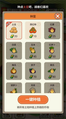 4、自由决定商品类型,价格和商店布局,创造一个独特的蔬菜市场。