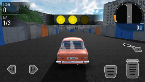 5、进入游戏如图,玩家需驾驶俄罗斯汽车进行跑圈,屏幕左边控制方向,右边则为油门和刹车。