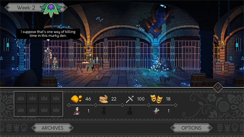 走到房间边缘就可以来到城市,如果看到某个区域有蓝色或者绿色标识,就意味着这里有事件发生,进去之后和NPC对话即可。进入大地图界面(随着游戏的推进而解锁),点击一个地点上面的放大镜图标,再选择一个手下就可以进行探索了。探索地点会给你带来一些金币和物资,也可以触发新的事件。