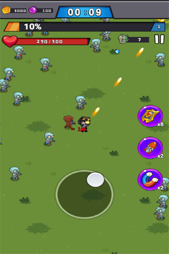 2、游戏采用俯视视角操作模式,玩家可自由控制角色移动方向,并实时瞄准并射击来自各个方位的敌对单位。
