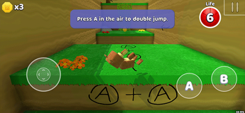 2、左下角轮盘按钮控制超级熊自由移动,右侧屏幕滑动旋转视角,正常情况下A跳跃,B攻击。
