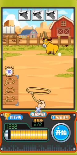 2、疯狂套牛,使用套索抓住屏幕中出现的牛。