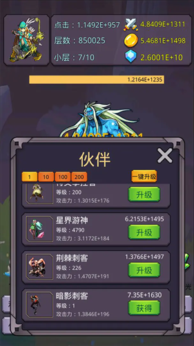 萌宠相伴,属性加成:培养形态各异的可爱宠物,它们不仅能提升你的攻击力、暴击率,更能大幅增加金币收益,让你资源无忧!