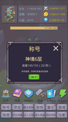 荣耀之路:完成各类任务,不断提升你的【称号段位】,在超大数值的世界里,尽情享受从萌新到大佬的畅快成长之旅!