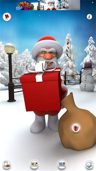 会说话的圣诞老人下载安卓版是一款以家庭共乐为核心设计的节日向休闲游戏,游戏延续了经典会说话系列的趣味基因,将温馨与搞怪巧妙融合,玩家只需要对着手机说出祝福或俏皮话,这位红衣白须的老爷爷便会用标志性的嗬嗬嗬声调原样复述,并配合眨眼、大笑甚至被雪球砸倒等生动动画反馈。会说话的圣诞老人下载安卓版游戏凭借简单直观的操作和高响应度的互动机制,成为大人小孩都能轻松上手的欢乐源泉,轻点包袱可收获随机礼物,送上牛奶饼干能触发友好互动,而调皮地戳他几下则会引来夸张的抗议表情。更有趣的是,用户还能录制3D动画贺卡,一键分享至社交平台或亲友群聊,让节日问候不再只是文字,而是充满笑声的个性化视频,为年末增添一抹童趣与温情。