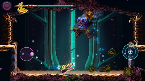 5、左侧摇杆控制角色移动,右侧控制攻击以及跳跃。