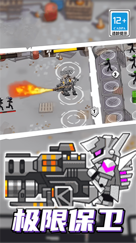 通过击败敌人获取金币,实时升级城墙耐久、强化兵种属性或解锁新机甲,平衡攻防资源分配。