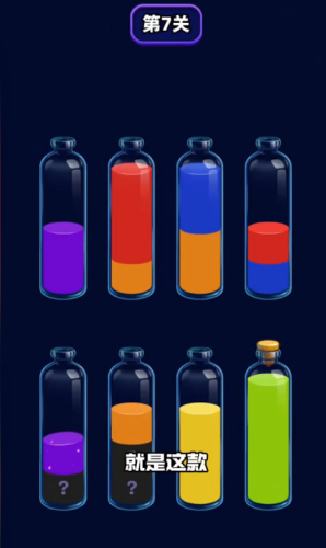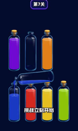 6、开局先观察,优先把液体倒入能快速装满的瓶子,减少后续操作难度,提高通关效率。