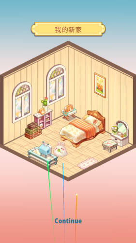 1、下载打开拼装小窝,点击进入游戏,玩家需要将家具摆放到房间正确的位置上。