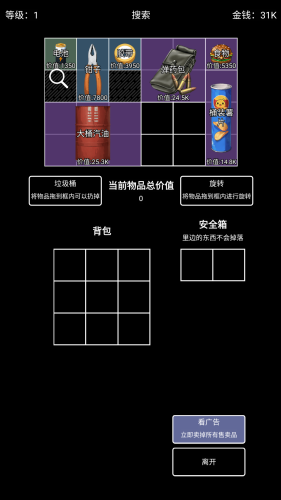 8、将值钱的物品放入自己的背包中,但是要注意单格价值,如图中,虽然汽油价格是最高的,但是占据了6格,而弹药包跟它相差无几却只占用4格,一定要更合理的利用空间,带出价值更高的物资。
