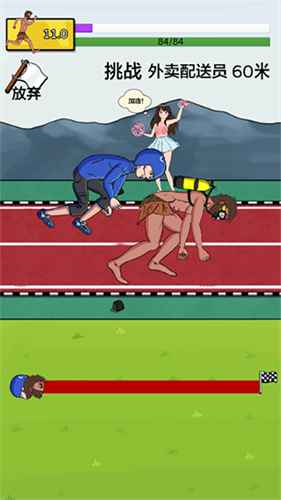 2、在游戏中,玩家们可以通过疯狂点击屏幕来提升我们的速度,先到达终点即可获得胜利。