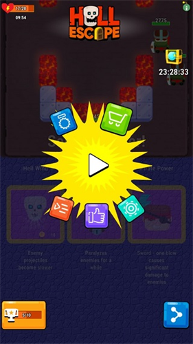 “停止移动自动攻击敌人”,换言之在移动过程中便无法攻击敌人,这也构成了《地狱逃脱》玩法要点所在。随着关卡的推进,玩家面对的敌人也会越来越强,不止是玩家自身,敌人除了靠身体撞击,也会发射投射物,高等级和大量的敌人发动攻击将会形成弹幕,玩家需要在躲避弹幕的空隙停下脚步,让角色有攻击的机会。