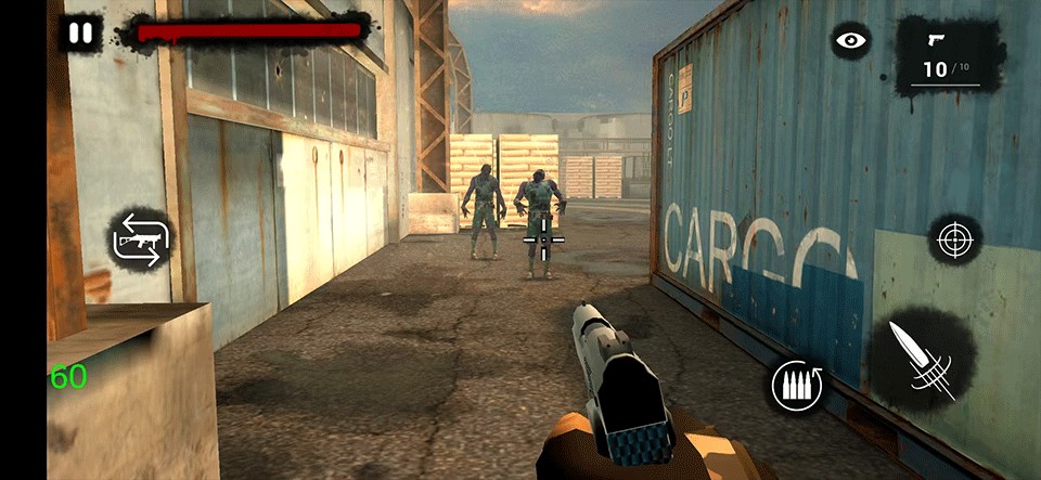 3、在战斗中,滑动屏幕左侧控制角色移动,当僵尸靠近时,瞄准目标并点击攻击键进行射击。