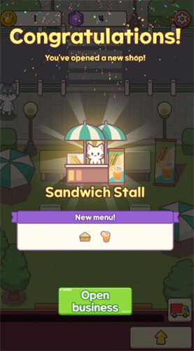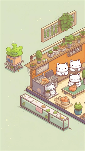 3、游戏采用了温馨治愈的卡通画风,配合细腻的人物和场景设计,营造出沉浸式的猫咪咖啡厅体验。