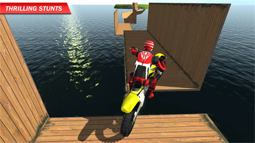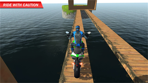 3、在这个游戏中,你可以骑着摩托车穿梭在郊区、森林、雪山、桥梁。