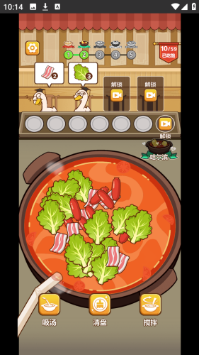 5、如果锅里的食材无法完成顾客的需求可以点击右下角搅拌。