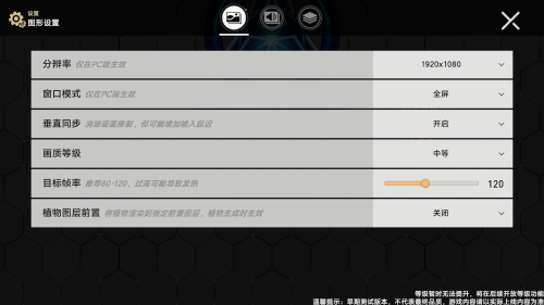 2、接下来我们可以点击右上角的齿轮图标,打开设置页面,对分辨率、窗口模式、垂直同步等参数进行调整。