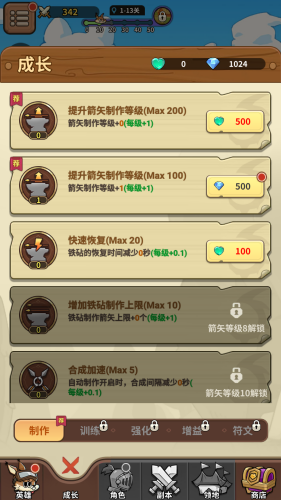 1、支持自动制作和合成弓箭的属性,采用了轻松和有趣的放置玩法。