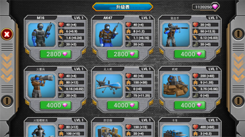 6、获得硬币和升级你的商店,因为有各种各样的陆军坦克军队和军事战士执行。