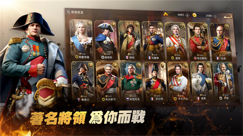 - 10 个章节,60 多个著名战役,100 个国家和军队。基于历史战争的引人入胜的故事,包括马伦戈战役、滑铁卢战役、特拉法加战役、莱比锡战役,带你回到拿破仑的欧洲战争。