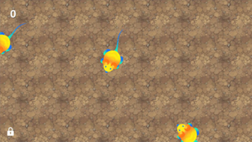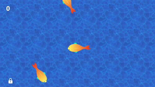 4、点击到小金鱼就会消失然后重新出现新的,左上角会有点击数。