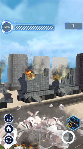 5、我们可以根据这些建筑物的情况选择不同数量的炸弹去爆破,伴随轰鸣声,各种砖块落下。
