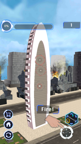 3、选中后点击“fire”就可以发射武器摧毁建筑了。