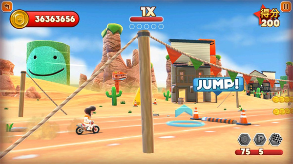 绝技飞车下载手机版是一款将摩托车竞速与高难度特技表演深度融合的卡通风格赛车手游,游戏打破了传统赛车游戏的边界,赛道横跨城市楼顶、峡谷断桥、盘山隧道甚至鲨鱼池上方,每一关都充满意想不到的机关与挑战,玩家需在高速行驶中精准完成跳跃、滑行、空中翻转等动作,利用大功率风扇实现悬浮飞跃,或借助斜坡腾空穿越障碍。游戏的操作方式极为友好,只需点击或长按屏幕即可触发跳跃、滑行等动作,配合自动加速机制,新手也能快速享受驰骋快感。绝技飞车下载手机版内含数十个风格迥异的关卡,搭配多款可解锁角色与摩托车皮肤,满足收集与装扮乐趣。游戏支持单人挑战与多人联机,在合作或对抗中探索更多通关可能。它不只是一场速度竞赛,更是一次对时机判断与环境理解的趣味测试,适合喜欢动脑又爱刺激的玩家反复尝试。