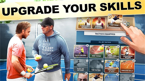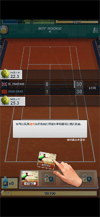 7、获取经验并学习赛事技巧,例如发球和截击,基线防御,杰作等等。