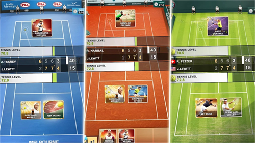 3、真实巡回赛复刻系统,完整还原四大满贯赛事,天气变化实时影响球员状态与战术选择。