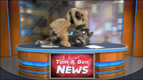 4、点击狗抓按钮,狗狗本会在新闻播报过程中对汤姆猫做出各种搞怪操作,同理汤姆猫也可以这么操作。