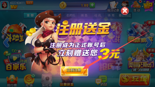 在平台进行注册其实很简单,首先下载游戏,然后进入游戏大厅,点击“注册送金”按钮