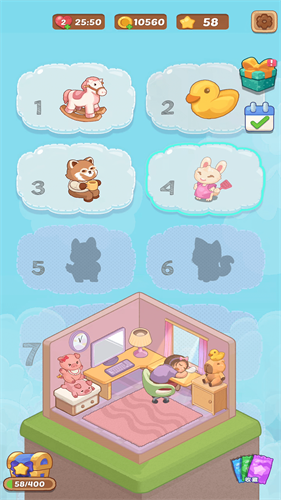 2、各种各样的挑战任务等你去选择完成,不同关卡里有各种各样的家具装饰可以使用。