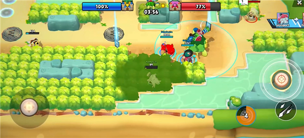 2、控制角色在地图中移动,长按攻击键移动方向攻击敌方英雄