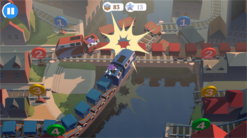 列车调度员世界最新版是一款考验手指反应与路线规划能力的休闲游戏,游戏没有追求写实画风,反而用圆润可爱的3D模型打造出整个欧洲铁路网。红色小火车、蓝色小货车在轨道上嘟嘟前行,连站台旁的路灯和信号塔都带着童话般的憨态。游戏中每列火车头部有颜色标识,轨道出入口也有对应色牌,只有让火车驶入同色轨道,才能安全通过并获取货物和星星,但实际操作远比想象中刺激,因为列车不会自动停下等待,它们按照固定速度持续前进。玩家必须用手指快速点击列车并拖拽到正确轨道,或者直接切换道岔开关。列车调度员世界最新版游戏没有时间限制,也没有体力消耗,玩家可以随时暂停思考最佳调度顺序。画面中所有元素都圆润可爱,连碰撞事故都被处理成轻飘飘的烟圈,毫无挫败感。适合在通勤路上或睡前玩上几局,既能放松心情,又能体验掌控全局的小小成就感。